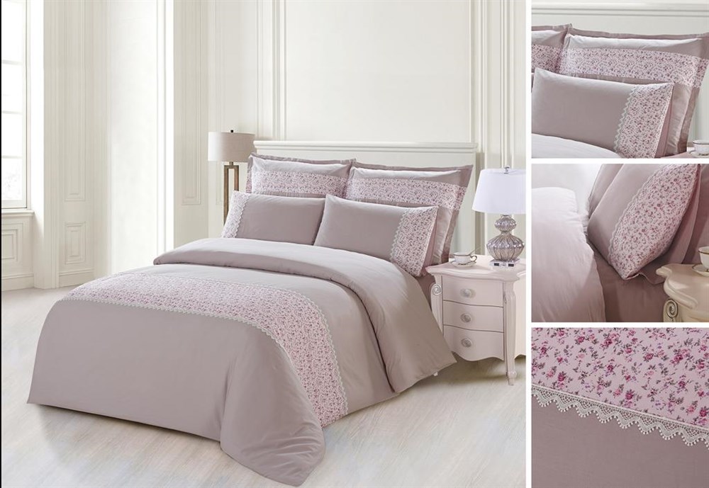 Сатин - шелковистая гладкая ткань с характерным блеском. Благодаря диагональному пересечению нитей это достаточно плотный и исключительно прочный материал с низкой сминаемостью. В комплекте пододеяльник и наволочки украшены изящным кружевои высшего качества. Белье из данной разновидности сатина выглядит роскошно и прослужит дольше любого другого хлопкового белья.