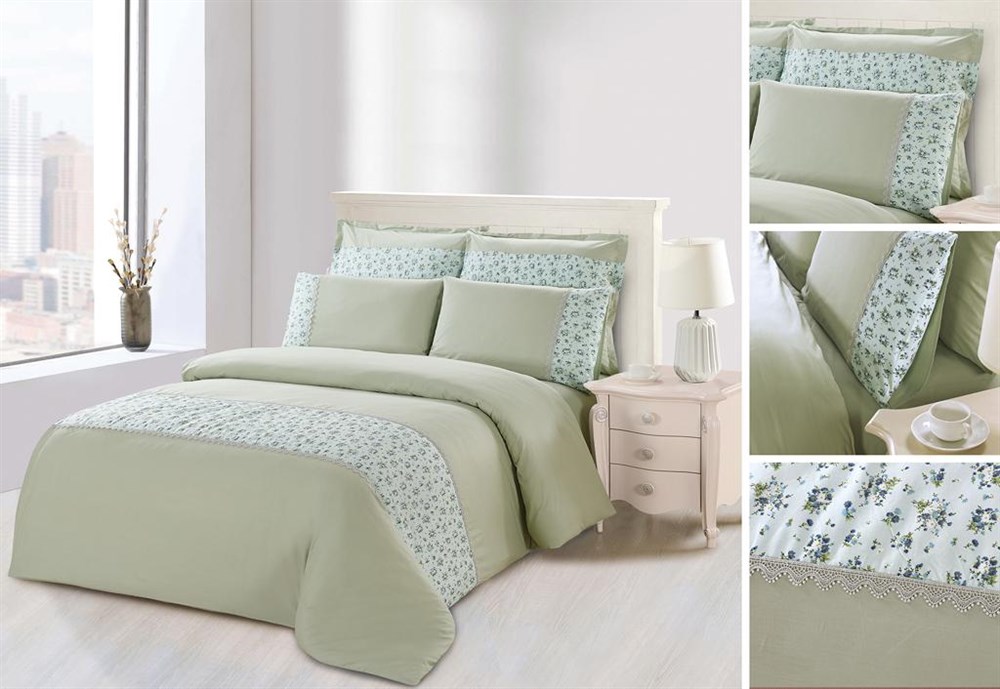 Сатин  - шелковистая гладкая ткань с характерным блеском. Благодаря диагональному пересечению нитей это достаточно плотный и исключительно прочный материал с низкой сминаемостью. В комплекте пододеяльник и наволочки украшены изящным кружевои высшего качества. Белье из данной разновидности сатина выглядит роскошно и прослужит дольше любого другого хлопкового белья.