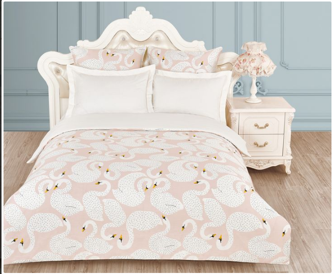 Комплект постельного белья Сатин вышивка Белые лебеди евро