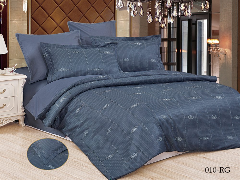 Постельное белье Cleo коллекции "Royal Jacquard" порадует вас прекрасным внешним видом и высоким качеством изготовления. Изделие выполнено из жаккарда - одного из самых красивых материалов, используемых для производства постельного белья. Изящный узор, образованный сложным переплетением нитей, выглядит очень эффектно. Ткань гладкая, с интересной фактурой, имеет шелковистую поверхность. Постельное белье из жаккарда считается элитным. Простыня, обратная сторона пододеяльника и наволочек выполнены из однотонного сатина в соответствии с основной расцветкой. По периметру наволочек 70х70 выполнена отделка легким ажурным кантом, наволочки 50х70 имеют французские "ушки" с декоративной вышивкой. Внутри пододеяльника имеются петли для фиксации одеяла. Плотность материала 140 г/м2 , пододеяльник на молнии.