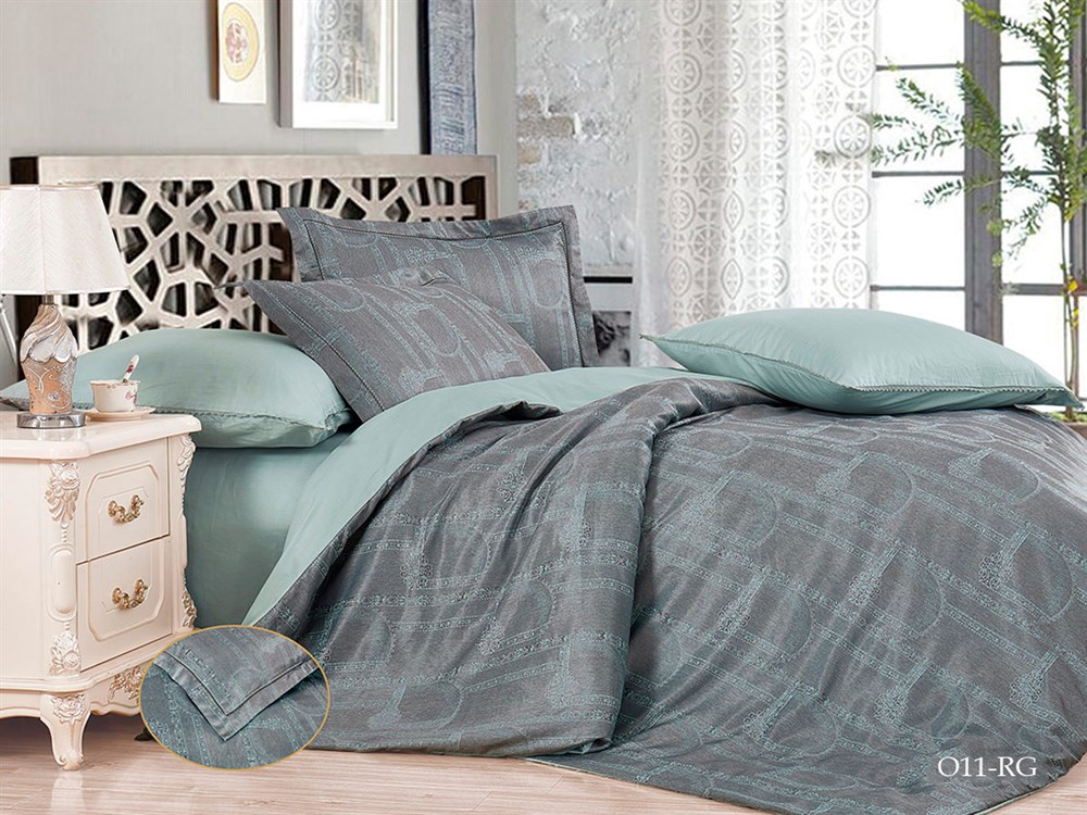Постельное белье Cleo коллекции "Royal Jacquard" порадует вас прекрасным внешним видом и высоким качеством изготовления. Изделие выполнено из жаккарда - одного из самых красивых материалов, используемых для производства постельного белья. Изящный узор, образованный сложным переплетением нитей, выглядит очень эффектно. Ткань гладкая, с интересной фактурой, имеет шелковистую поверхность. Постельное белье из жаккарда считается элитным. Простыня, обратная сторона пододеяльника и наволочек выполнены из однотонного сатина в соответствии с основной расцветкой. По периметру наволочек 70х70 выполнена отделка легким ажурным кантом, наволочки 50х70 имеют французские "ушки" с декоративной вышивкой. Внутри пододеяльника имеются петли для фиксации одеяла. Плотность материала 140 г/м2пододеяльник на молнии.