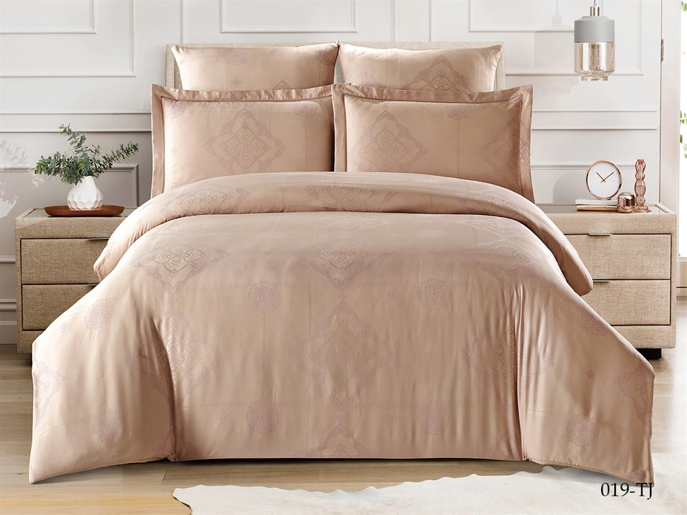Постельное белье Cleo из жаккарда очень прочное и износостойкое, легкое в уходе и приятное на ощупь. В состав материала, используемого при производстве данного изделия, входит тенсель - уникальный экологичный материал, получаемый из древесины австралийского эвкалипта. Тенсель придает ткани удивительную мягкость и нежность. Изящный узор на лицевой стороне, образованный сложным переплетением нитей, выглядит очень эффектно. Ткань с интересной фактурой имеет шелковистую поверхность и обладает легким блеском. Постельное белье из жаккарда считается элитным. Простыня, обратная сторона пододеяльника и наволочек выполнены из однотонного сатина в соответствии с основной расцветкой.
