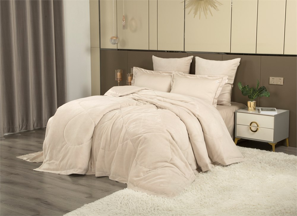 Коллекция Premium сегмента, постельное белье с одеялом «Lindor Fluffy». Двухстороннее одеяло: прохладный египетский хлопок и роскошный премиум-велюр, украшен элегантной стежкой. Комплект идеально подойдет для любителей поспать под кондиционером, велюровая сторона приятно окутает тело, сторона с египетским хлопком предназначена для любителей естественной прохлады в жару. Украшена геральдической лилией, выполненной из высококачественных страз в цвет ткани. Отделано витым кантом! Двухсторонняя наволочка 50х70 декорирована геральдической лилией из страз. Наволочки 70х70 выполнены из комбинации нежного велюра и египетского хлопка. Простынь выполнена из египетского хлопка. Размерный ряд: евро. Комплекты изящно выложены в Брендовую подарочную упаковку «KAZANOV.A.».