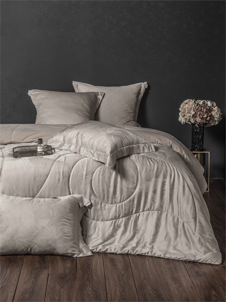 Новинка премиального сегмента от KAZANOV.A. Монохромная коллекция LINDOR J’ADORE — отражение актуального тренда в оформлении спальни: чистота цвета, сдержанная выразительность и мягкая геометрия линий. Коллекция выполнена из трёх видов премиальных тканей, гармонично дополняющих друг друга и создающих сложный тактильный и визуальный образ. Представлена в трёх размерах: евро, семейный, полуторный. Состав комплекта по материалам: ЖАККАРДОВЫЙ ТЕНСЕЛЬ — 100% натуральная ткань с эффектом струящейся прохлады: лёгкая, дышащая, с благородной фактурой сложного плетения: • Одеяло (одна сторона) 155х210см — 2шт., с элегантной стёжкой и наполнителем из инновационного Эко-волокна «Микрогель», с отделкой по периметру утончённым руликом из шенилла. • Наволочки 50х70 см — 2шт. (одна сторона), украшены декоративным ушком по трём сторонам МУАРОВЫЙ ВЕЛЮР — эффектный благородный материал с глубокой игрой света: • Одеяло (вторая сторона) 155х210см — 2шт. • Наволочки 70х70 см — 2шт. (одна сторона) ЕГИПЕТСКИЙ ХЛОПОК — 100% натуральная ткань - эталон гладкости и прочности: • Наволочки 50?70 см (вторая сторона) • Наволочки 70?70 см (вторая сторона) • Простыня 230х250см — 1 шт. Каждый комплект коллекции представлен в дизайнерской коробке от бренда KAZANOV.A: ручная выкладка и фирменная эстетика превращают их в безупречный подарок LINDOR J’ADORE — формула современного комфорта, выраженная в цвете, фактуре и прикосновении