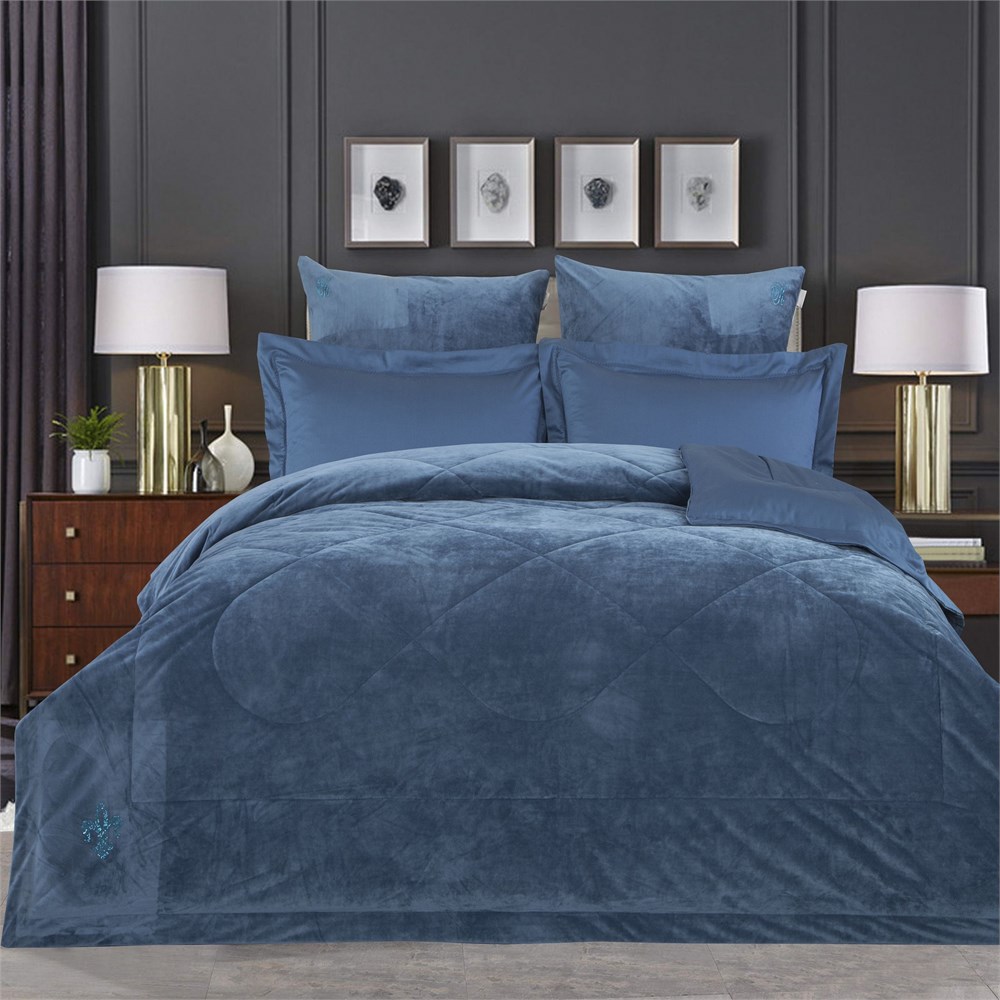 Коллекция Luxury сегмента, постельное белье с одеялом «Lindor Premium». Двухстороннее одеяло: прохладный египетский хлопок и роскошный мягкий велюр, украшен стежкой в виде геральдической лилии. Комплект идеально подойдет для любителей поспать под кондиционером, велюровая сторона приятно окутает тело, сторона с египетским хлопком предназначена для любителей естественной прохлады в жару. Отделано витым кантом! Двухсторонняя наволочка 50х70 отделана швом-вышивкой. Наволочки 70х70 выполнены из комбинации нежного велюра и египетского хлопка, украшены элегантным лого из страз. Простынь выполнена из египетского хлопка.