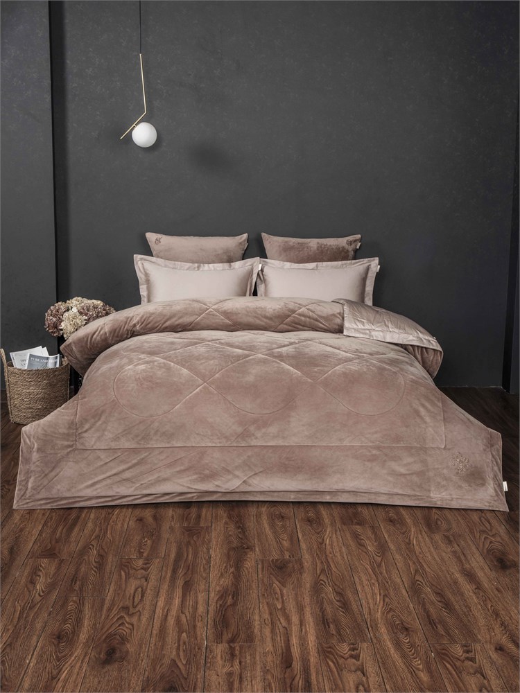 Коллекция Luxury сегмента, постельное белье с одеялом «Lindor Premium». Двухстороннее одеяло: прохладный египетский хлопок и роскошный мягкий велюр, украшен стежкой в виде геральдической лилии. Комплект идеально подойдет для любителей поспать под кондиционером, велюровая сторона приятно окутает тело, сторона с египетским хлопком предназначена для любителей естественной прохлады в жару. Отделано витым кантом! Двухсторонняя наволочка 50х70 отделана швом-вышивкой. Наволочки 70х70 выполнены из комбинации нежного велюра и египетского хлопка, украшены элегантным лого из страз. Простынь выполнена из египетского хлопка.