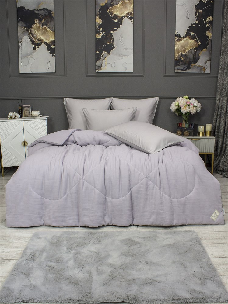 Новинка Коллекция Muslin & Satin Solid Color Монохромная элегантность в ультрамодном минимализме Коллекция объединяет два высококачественных хлопковых материала: Муслин Crinkle и классический сатин Solid Color. Это дуэт непринуждённой лёгкости и изысканной гладкости, который превращает спальню в пространство современного уюта и комфорта Состав и материалы: 1. Муслин Crinkle — одеяло: 100% натуральный хлопок с уникальным многослойным переплетением. Crinkle-обработка придаёт ткани лёгкий жатый рельеф без эффекта «состаривания», гарантирует прочность и мягкость, обеспечивает свободную циркуляцию воздуха, позволяя коже «дышать». Дизайнерская стежка и инновационный наполнитель эко-волокно Микрогель обеспечивают нежное и равномерное распределение тепла. 2. Сатин Solid Color — наволочки и простыня: 100% хлопок. Гладкий, прочный, с благородным матовым блеском. Подчёркивает динамичную фактуру муслина и придаёт коллекции элегантность. Рулик из шенилла с богатой бархатной текстурой добавляет коллекции нотку богемной роскоши. Применен в отделке одеяла и наволочек. Уход: 1.машинная стирка при 30 °C 2.легко стирается и быстро сохнет 3.главное преимущество— одеяло не требует глажки Упаковка: дизайнерская коробка от бренда KAZANOV.A.: ручная выкладка и фирменная эстетика превращают комплекты коллекции Muslin & Satin Solid Color в безупречный подарок. Текстильная продукция KAZANOV.A. — это неизменное качество и верность традициям!