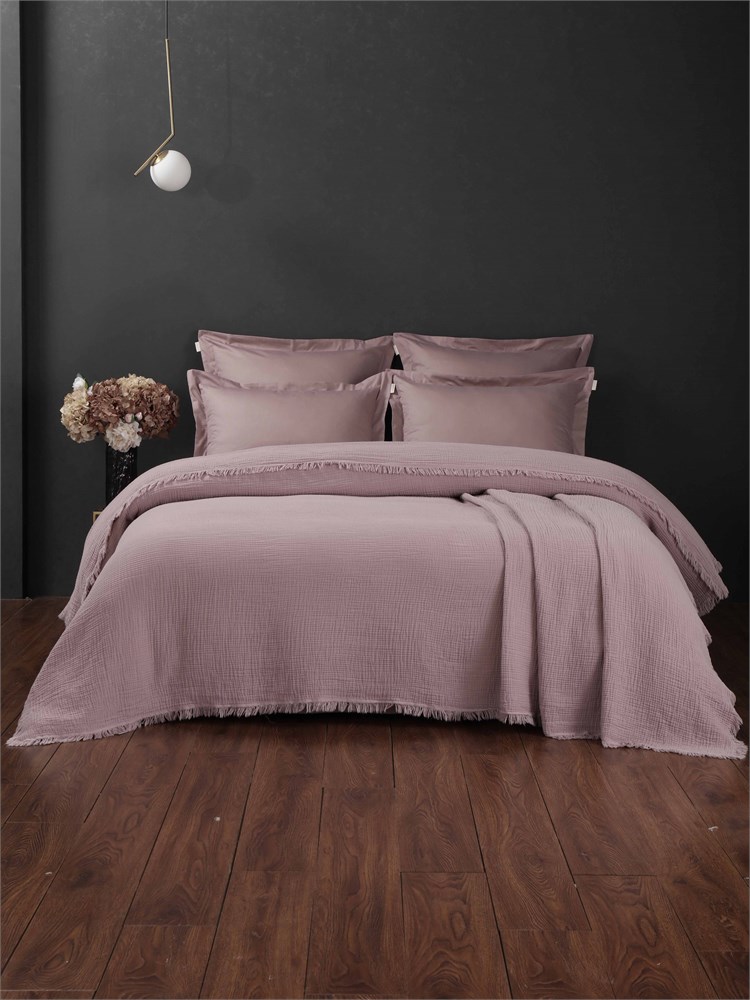 Коллекция Stonewash Muslin. Премиальный текстиль из натурального хлопка. Коллекция объединяет два хлопковых материала высочайшего качества — лёгкий многослойный муслин и шелковистый мако-сатин, идеально дополняющие друг друга. Это сочетание гарантирует безупречный комфорт сна и отдыха. Состав комплекта по материалам: Муслин-stonewashed. Летнее покрывало многослойный муслин (100% хлопок, умягчённый и сжатый по технике stonewashed). Изящная фестонная отделка  по краю покрывала  добавляет актуальную богемную нотку. Мако-сатин-AirJet - 100% хлопковый шелк, благородная матовая текстура и тактильное удовольствие: • Простыня, • Наволочки с отделкой декоративным ушком (+5 см). Комплектации:  Евро: покрывало 200х230 см; простыня 230х250 см; наволочки 50х70 см (2 шт); 70х70 см (2 шт). Семейный: покрывала 150?200 см (2 шт); простыня 230?250 см; наволочки 50?70 см (2 шт); 70?70 см (2 шт). Упаковка: Каждый комплект упакован в дизайнерскую коробку от бренда KAZANOV.A. - готовое решение для идеального подарка. Stonewash Muslin - элегантный дизайн, натуральные материалы и внимание к деталям – всё, чтобы ваш дом стал совершенным!