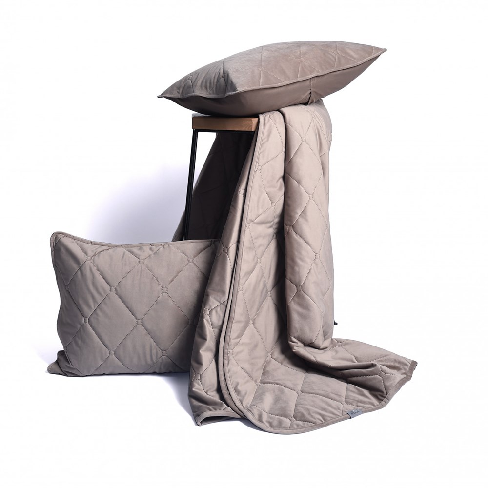 • Двусторонний дизайн — благородное сочетание мягкого велюра и практичной микрофибры позволяет менять облик комнаты простым переворачиванием комплекта.