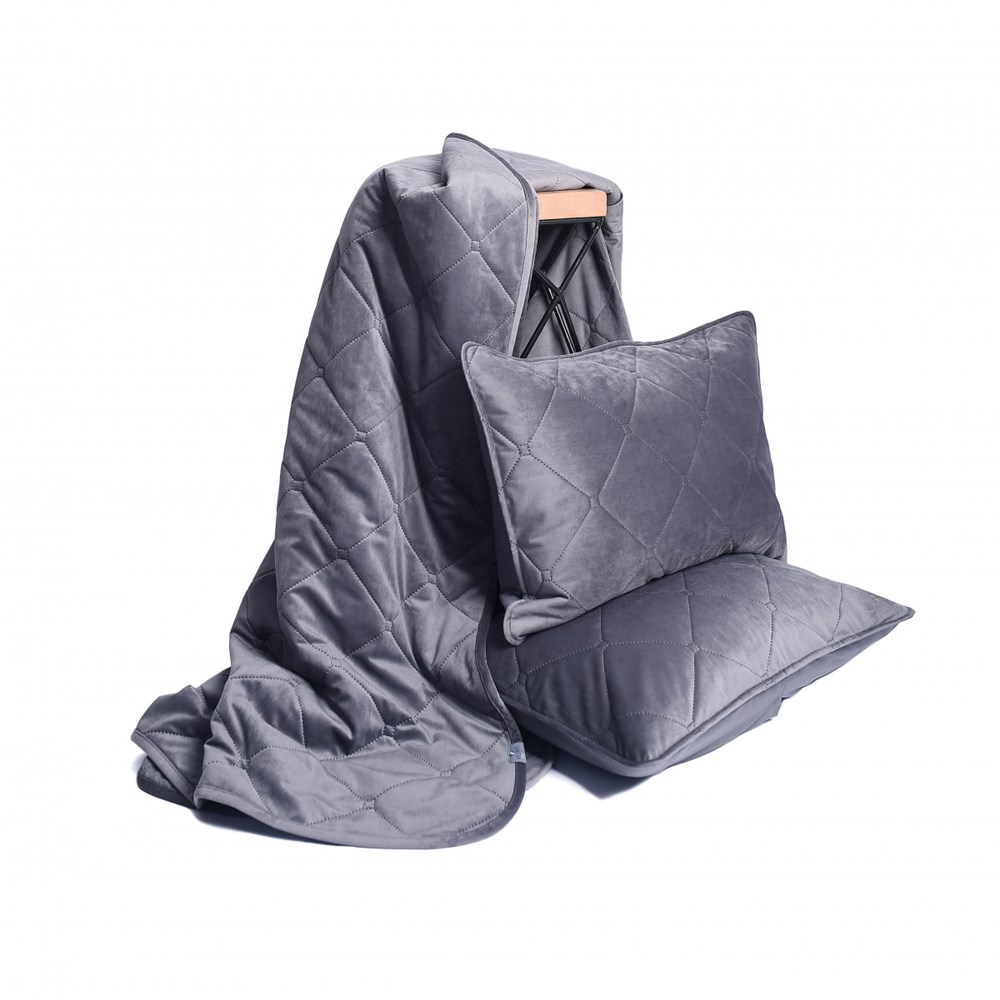 • Двусторонний дизайн — благородное сочетание мягкого велюра и практичной микрофибры позволяет менять облик комнаты простым переворачиванием комплекта.