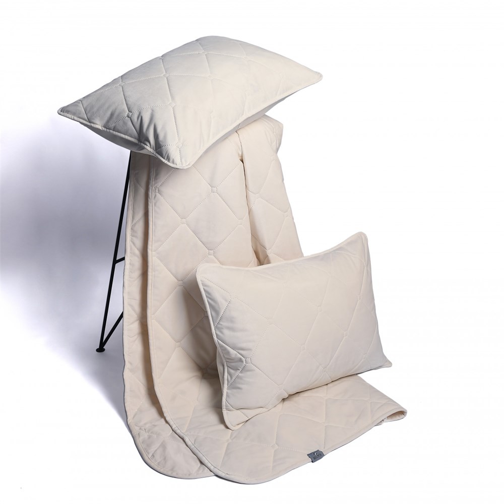 • Края покрывала и наволочки окантованы в тон основной ткани, что придает изделию аккуратности и лаконичности.