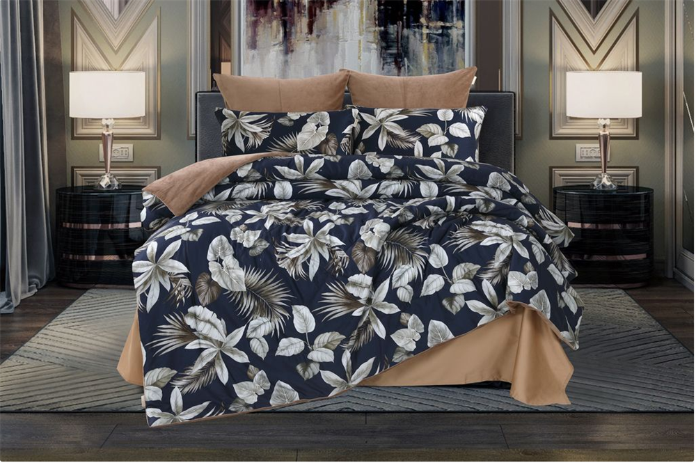 Всесезонная Коллекция «Dolce Fiore АВС» представляет собой дизайнерские комплекты постельного белья и двусторонних одеял. Коллекция выполнена в трех видах ткани: А - египетский хлопок Digital, B - египетский хлопок, С - изысканный велюр. Комплект состоит из: - Двустороннего одеяла, для любителей поспать под кондиционером, идеально подойдет велюровая сторона к телу, сторона с египетским хлопком к телу - для естественной прохлады в жару, с оригинальным дизайном стежки, отделанное витым кантом с 3х сторон. - двух наволочек 50х70 и двух наволочек 70х70; - простыни из египетского хлопка. Коллекция представлена в 3х комплектациях: евро, семейное, полуторное. На выбор самые популярные цвета в этом сезоне. Упаковано в фирменную коробку KAZANOV.A.с PVC ручкой