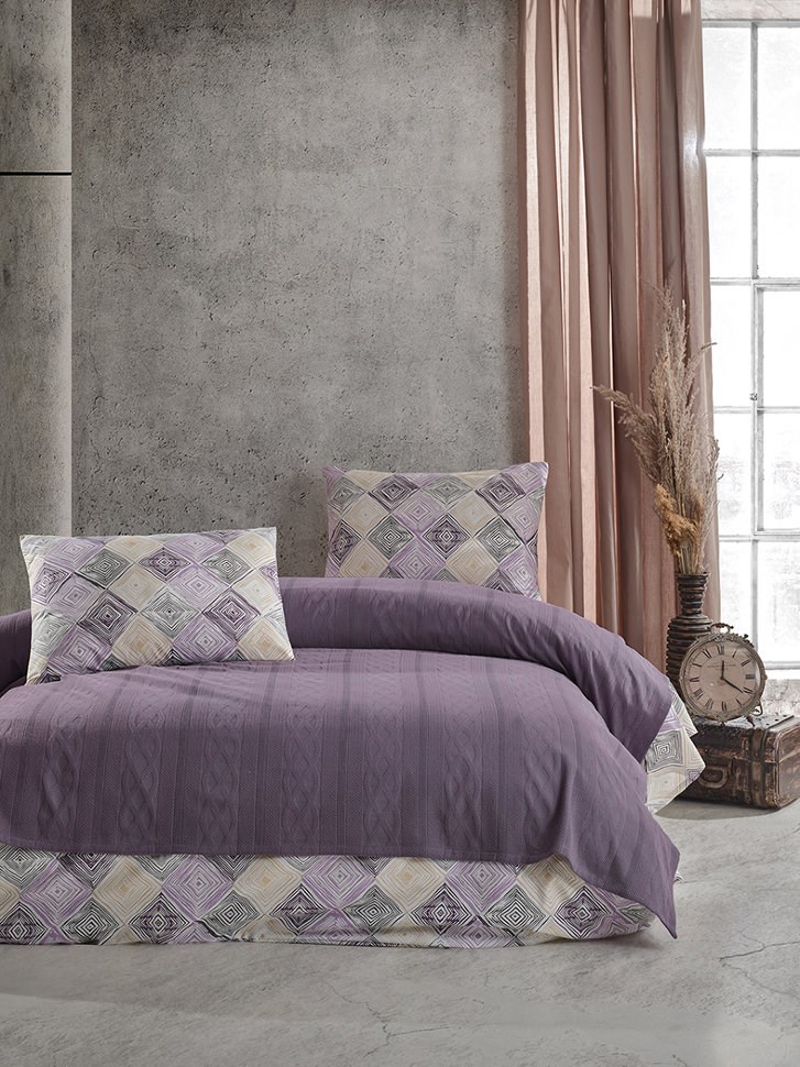 Комплект постельного белья из ранфорса и вязанного пледа из 100% хлопка, произведено в Турции